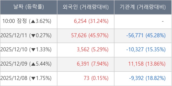 [표] 외국인ㆍ기관 순매매량 (단위 주)