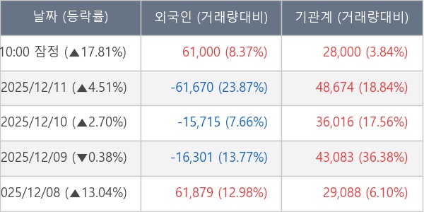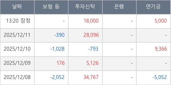 ※ 사모펀드 등 일부 기관의 순매매량은 표시되지 않음