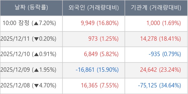 ※ 사모펀드 등 일부 기관의 순매매량은 표시되지 않음