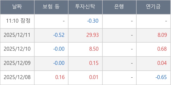 [표] 주요 기관별 순매매량 (단위 만주)