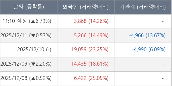 [표] 외국인ㆍ기관 순매매량 (단위 주)