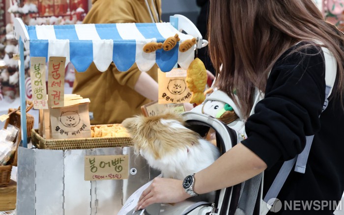 [서울=뉴스핌] 최지환 기자 = 12일 오후 서울 강남구 세텍에서 열린 크리스마스 서울 펫쇼에서 관람객들이 반려견과 함께 전시장을 둘러보고 있다. 2025.12.12 choipix16@newspim.com