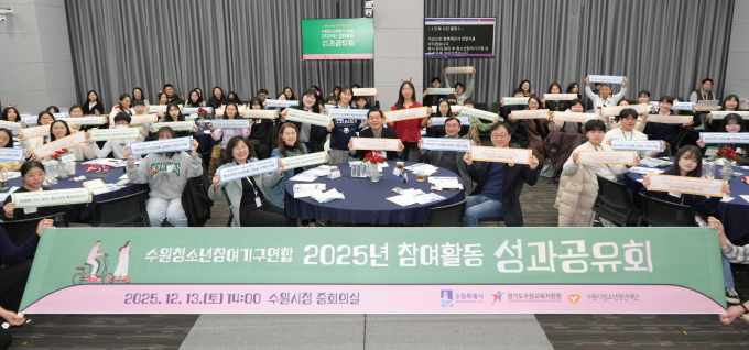 [수원=뉴스핌] 박노훈 기자 = 수원특례시는 지난 13일 시청 중회의실에서 '2025년 수원청소년참여기구연합 참여 활동 성과공유회'를 열고 청소년이 직접 개발한 정책을 공유했다고 14일 밝혔다.