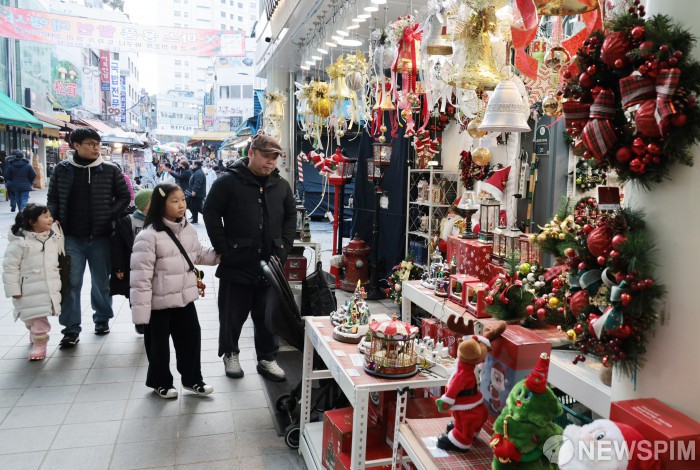 [서울=뉴스핌] 이길동 기자 = 크리스마스를 열흘가량 앞둔 14일, 서울 중구 남대문 시장에서 시민들이 크리스마스트리와 장식 용품을 살펴보고 있다. 2025.12.14. gdlee@newspim.com