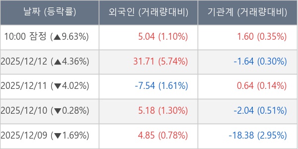 [장중수급포착] 한라캐스트, 외국인/기관 동시 순매수… 주가 +9.63%