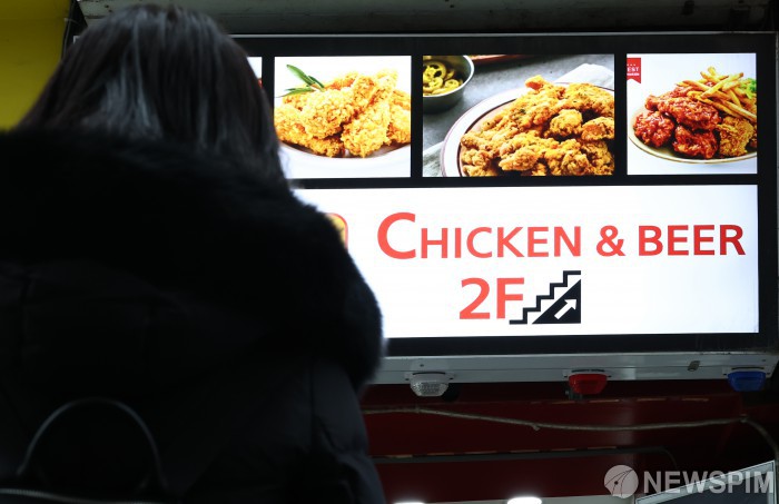 [서울=뉴스핌] 최지환 기자 = 정부가 상위 10대 치킨 프랜차이즈를 대상으로 매장 및 배달 주문 메뉴판에 조리 전 닭고기 무게를 고지해야 되는 '치킨 중량표시제'를 실시한 15일 서울 시내의 한 치킨매장 앞으로 시민들이 오가고 있다. 2025.12.15 choipix16@newspim.com