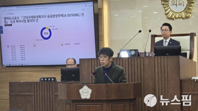 [평택=뉴스핌] 이성훈 기자 = 조례안을 설명하고 있는 유승영 시의원.2025.12.15 krg0404@newspim.com