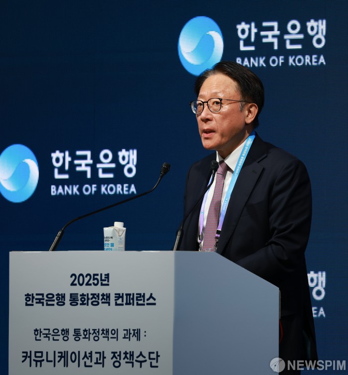 [서울=뉴스핌] 신성환 한국은행 금융통화위원이 15일 서울 중구 한국은행에서 열린 2025년 한국은행 통화정책 컨퍼런스에서 기조연설을 하고 있다. [사진=한국은행] 2025.12.15 photo@newspim.com