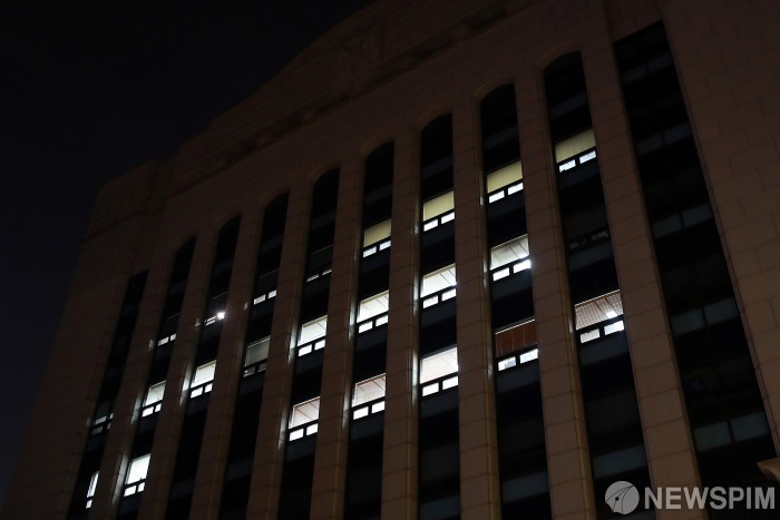 [서울=뉴스핌] 이형석 기자 = 경찰이 정치권의 통일교 금품 수수 의혹에 대한 전방위 수사에 착수했다. 15일 밤 서울 용산구 세계평화통일가정연합 한국본부(통일교 서울본부) 압수수색이 진행되고 있는 가운데 해당 건물의 불이 켜져 있다. 2025.12.15 leehs@newspim.com