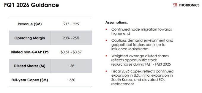 포트로닉스(종목코드: PLAB) 경영진은 향후 실적이 첨단 포토마스크에 대한 지속적인 수요, 지역별 제조 동향 및 생산 능력 확장에 의해 좌우될 것으로 예상한다. 여러 구조적 요인이 회사의 미래 성과를 견인할 전망이다.