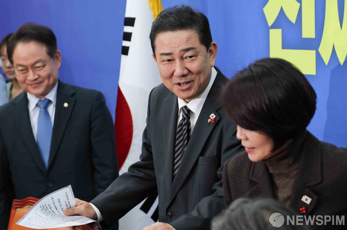 [서울=뉴스핌] 윤창빈 기자 = 김병기 더불어민주당 원내대표가 16일 서울 여의도 국회에서 열린 원내대책회의에 참석하고 있다. 2025.12.16 pangbin@newspim.com