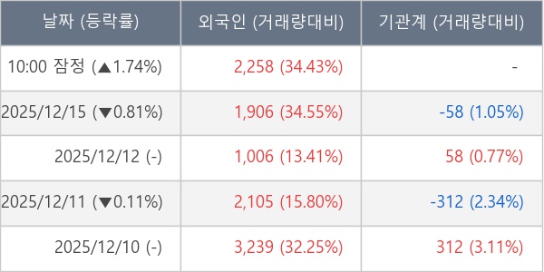[표] 외국인ㆍ기관 순매매량 (단위 주)
