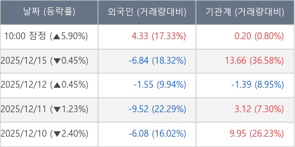 ※ 사모펀드 등 일부 기관의 순매매량은 표시되지 않음