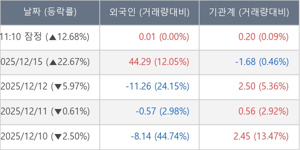 [장중수급포착] 에이블씨엔씨, 외국인/기관 동시 순매수… 주가 +12.68%