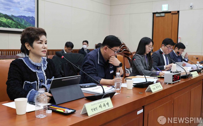 [서울=뉴스핌] 윤창빈 기자 = 이수연 경남대학교 극동문제연구소 교수가 16일 서울 여의도 국회 기후환경노동위원회에서 열린 일터에서의 괴롭힘 예방 및 피해자 보호에 관한 법률안 입법공청회에서 발언하고 있다. 2025.12.16 pangbin@newspim.com