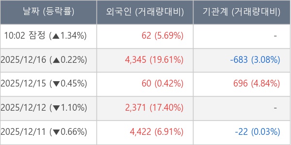 [표] 외국인ㆍ기관 순매매량 (단위 주)