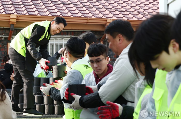 청년들과 연탄 봉사활동 하는 장동혁 대표