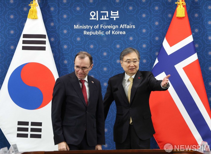 한-노르웨이 외교장관회담 참석한 조현 장관·에스펜 바르트 아이데 장관