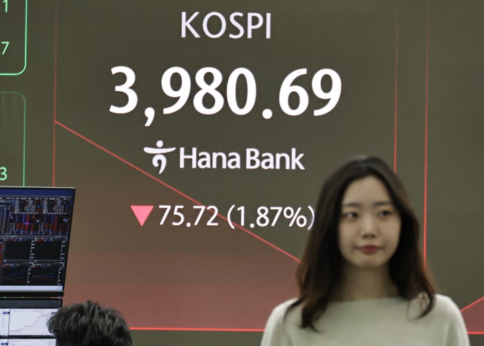 18일 한국거래소에 따르면 오전 9시 20분 기준 코스피 지수는 전 거래일 대비 49.11포인트(1.21%) 내린 4007.30을 기록 중이다. 이날 코스피는 4000선 밑인 3989.60에 출발했으나 이내 4000선을 회복했다.