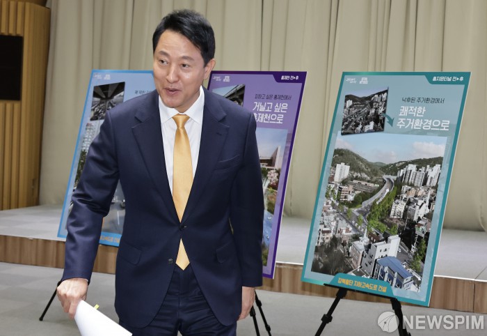 [서울=뉴스핌] 양윤모 기자 = 오세훈 서울시장이 18일 오전 서울시청 3층 대회의실에서 개최된 강북횡단 지하도시고속도로 건설 계획 기자설명회에 참석하고 있다. 강북횡단 지하도시고속도로는 성산 나들목(IC)부터 신내 나들목(IC)까지 서울 강북권을 가로지르는 내부순환로·북부간선도로 지하 약 20.5㎞ 구간에 왕복 6차로 규모로 총사업비 3조4000억 원이 투입돼 내년부터 본격 추진된다. 2025.12.18 yym58@newspim.com
