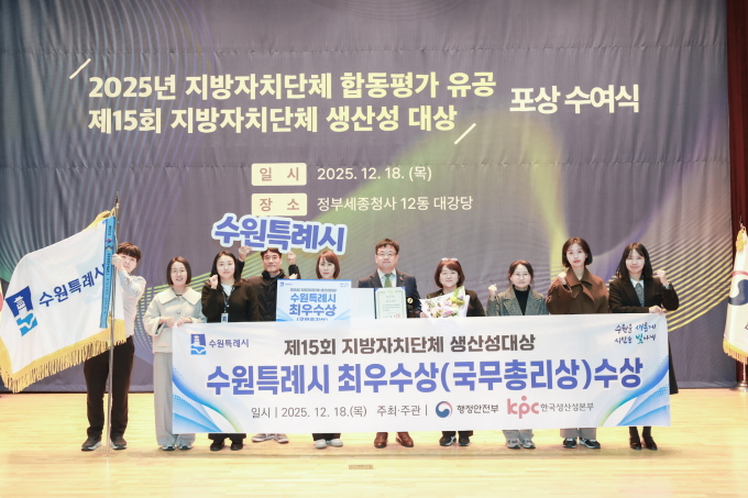 수원시 '제15회 지방자치단체 생산성 대상' 최우수상 수상