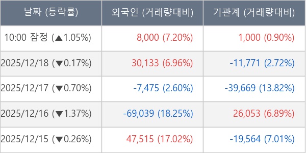 ※ 사모펀드 등 일부 기관의 순매매량은 표시되지 않음