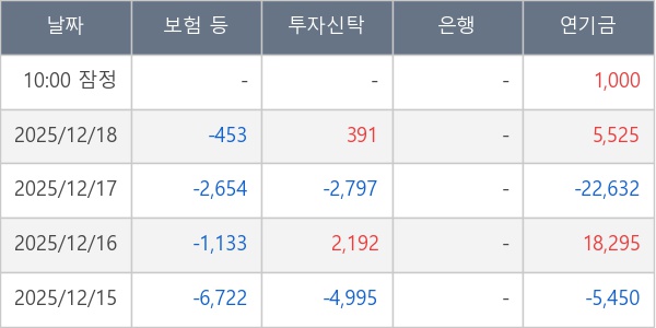 [표] 주요 기관별 순매매량 (단위 주)