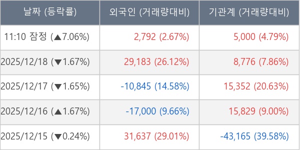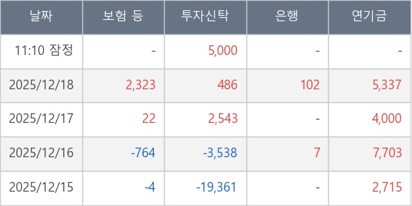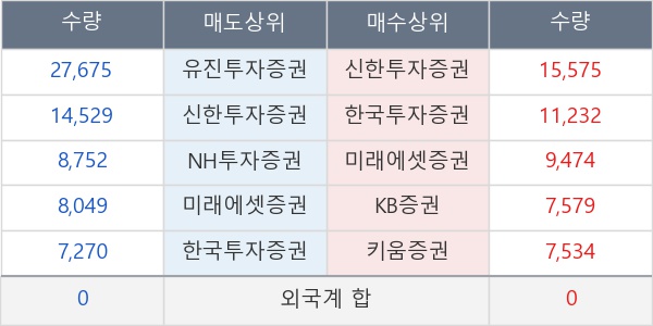 [표] 주요 기관별 순매매량 (단위 주)