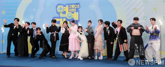[서울=뉴스핌] 이형석 기자 = 개그콘서트 신인 개그맨이 20일 오후 서울 여의도 KBS에서 열린 연예대상 시상식 포토월에서 포즈를 취하고 있다. 2025.12.20 leehs@newspim.com