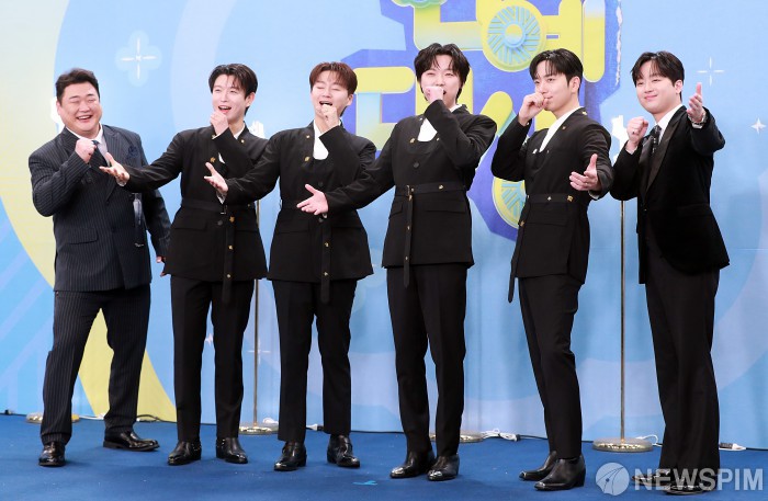 [서울=뉴스핌] 이형석 기자 = 불후의 명곡 팀 김준현, 포레스텔라, 이찬원이 20일 오후 서울 여의도 KBS에서 열린 연예대상 시상식 포토월에서 포즈를 취하고 있다. 2025.12.20 leehs@newspim.com
