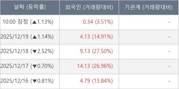 [표] 외국인ㆍ기관 순매매량 (단위 만주)