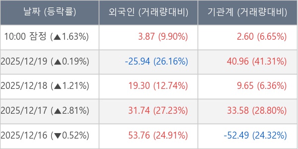 ※ 사모펀드 등 일부 기관의 순매매량은 표시되지 않음