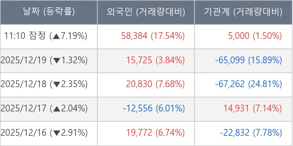 ※ 사모펀드 등 일부 기관의 순매매량은 표시되지 않음