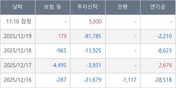 [표] 주요 기관별 순매매량 (단위 주)