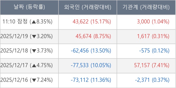 ※ 사모펀드 등 일부 기관의 순매매량은 표시되지 않음
