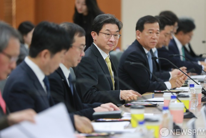 [서울=뉴스핌] 이형석 기자 = 이억원 금융위원장이 22일 오후 서울 여의도 한국거래소에서 열린 생산적 금융 대전환 회의에 자리하고 있다. 2025.12.22 leehs@newspim.com