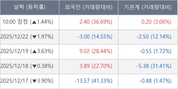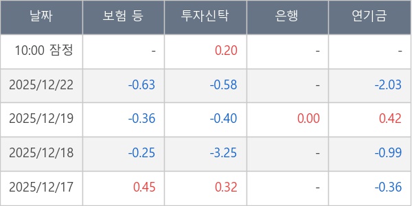 [표] 주요 기관별 순매매량 (단위 만주)