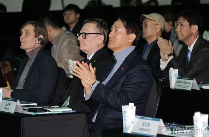 [서울=뉴스핌] 양윤모 기자 = 오세훈 서울시장이 23일 오전 서울 중구 DDP 아트홀에서 '미래 변화에 대응하는 새로운 소득보장제도의 구축'을 주제로 개최된 '2025 서울 국제 디딤돌소득 포럼' 행사에 참석해 박수치고 있다. 서울 국제 디딤돌소득 포럼은 서울시가 추진하는 대안적 복지모델인 서울 디딤돌소득을 중심으로, 국내외 석학과 정책 전문가들이 모여 미래 복지제도의 새로운 방향을 함께 모색하고 포용적 사회로 나아가기 위한 글로벌 논의를 이어가는 자리이다. 행사에는 오 서울시장, 최호정 서울시의회 의장, 제임스 로빈슨 교수(2024 노벨경제학상 수상자), 강성진 고려대학교 경제학과 교수 등 250명이 참석했다2025.12.23 yym58@newspim.com