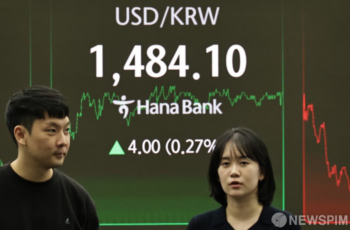 [서울=뉴스핌] 양윤모 기자 = 23일 오후 코스피가 전장 종가보다 11.39 포인트(0.28%) 상승하며 4117.32로, 코스닥은 9.58 포인트(1.03%) 하락한 919.56으로 장을 마감한 가운데, 서울 중구 하나은행 딜링룸에서 직원들이 업무를 보고 있다. 서울외환시장에서 달러/원 환율은 전장 대비 4.00원 상승한 1484.10원에 주간거래를 마감했다. 2025.12.23 yym58@newspim.com
