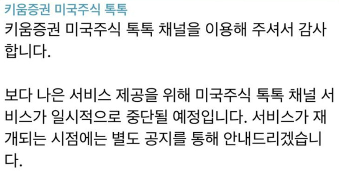 키움증권, 텔레그램 '미국주식 톡톡 서비스' 중단