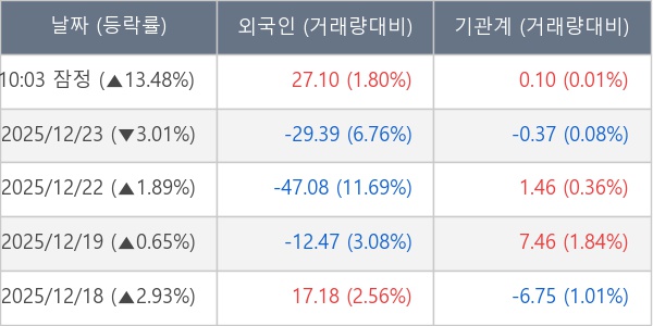 ※ 사모펀드 등 일부 기관의 순매매량은 표시되지 않음