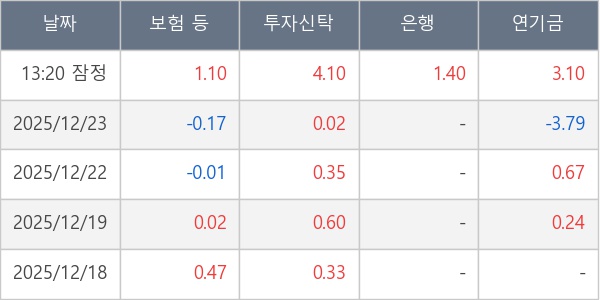 [표] 주요 기관별 순매매량 (단위 주)