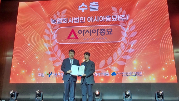 [서울=뉴스핌] 김연순 기자 = 농업회사법인 아시아종묘(주)는 지난 23일 열린 '2025 하이서울기업 페스티벌'에서 수출부문 표창장을 수여받았다고 24일 밝혔다. 서울 코엑스 마곡에서 열린 이번 행사는 서울시와 서울경제진흥원 등이 주최했으며, 올 한해 각 분야에서 혁신적 성과를 낸 유망 기업들을 격려하고 성과를 공유하는 자리였다.