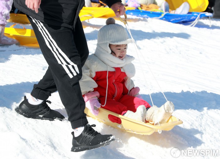 [서울=뉴스핌] 이형석 기자 = 크리스마스를 맞이한 25일 오후 서울 노원 씽씽눈썰매장에서 아이들이 눈썰매를 타고 있다. 2025.12.25 leehs@newspim.com