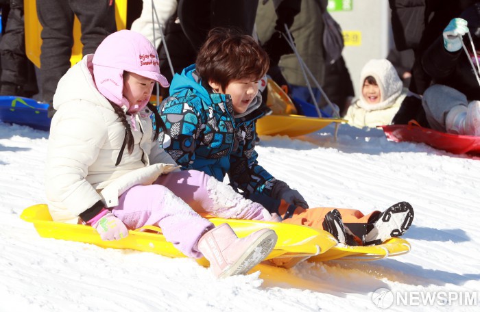 [서울=뉴스핌] 이형석 기자 = 크리스마스를 맞이한 25일 오후 서울 노원 씽씽눈썰매장에서 아이들이 눈썰매를 타고 있다. 2025.12.25 leehs@newspim.com