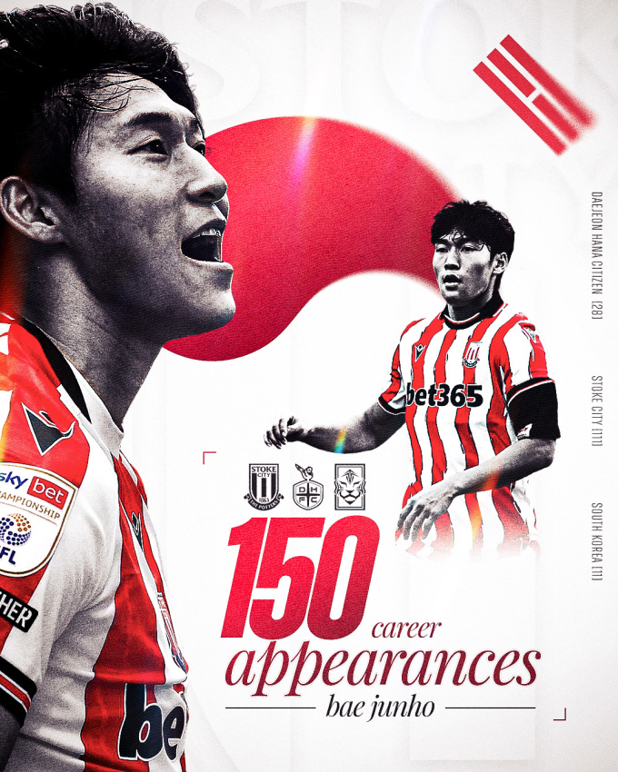 [서울=뉴스핌] 장환수 스포츠전문기자= 배준호의 150경기 출전을 기념하는 스토크시티의 게시물. [사진=스토크시티] 2025.12.27 zangpabo@newspim.com