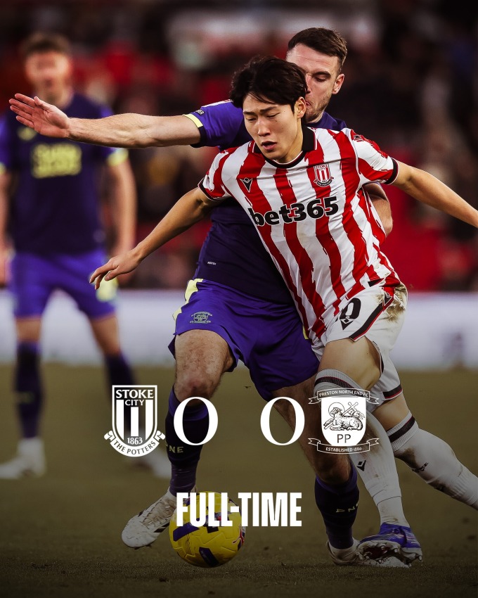 프레스턴과 0-0으로 비긴 스토크시티는 최근 2경기에서 1무 1패로 주춤하며 승점 34, 리그 10위에 머물렀다. 프레스턴은 5위에 올라섰다.