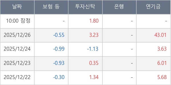 [표] 주요 기관별 순매매량 (단위 만주)