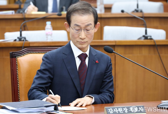 [서울=뉴스핌] 정일구 기자 = 김호철 감사원장 후보자가 29일 오전 서울 여의도 국회에서 열린 인사청문회에서 의원 질의를 경청하고 있다. 2025.12.29 mironj19@newspim.com