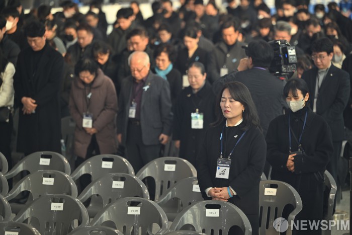 [서울=뉴스핌] 사진공동취재단 = 12·29 제주항공 여객기 참사 1주기인 29일 오전 전남 무안국제공항에서 열린 참사 1주기 추모식에 참석한 유가족들이 오열하고 있다. 2025.12.29 photo@newspim.com